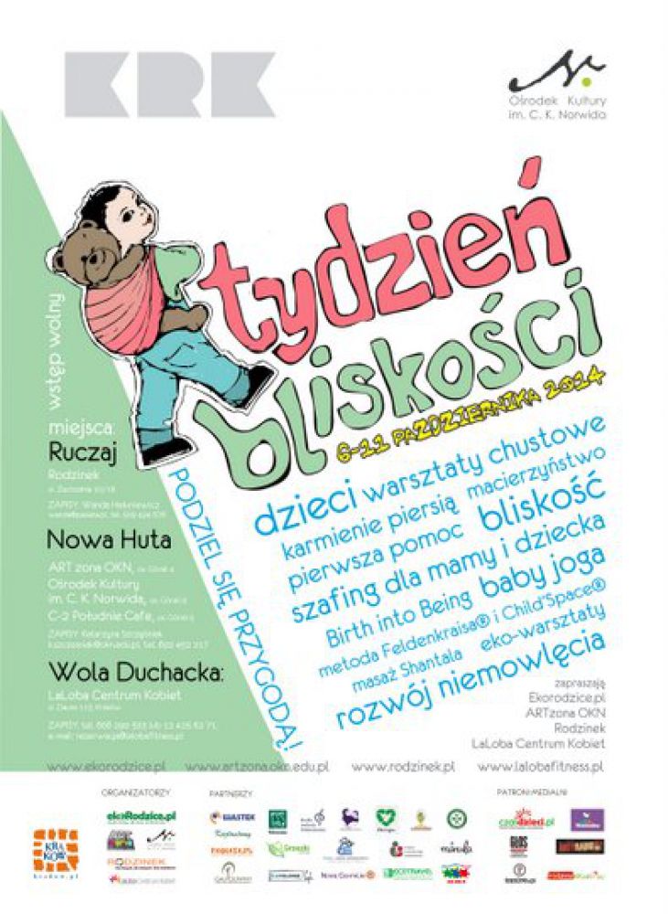 Portal Ekorodzice.pl, ARTzona Orodka Kultury im. C. K. Norwida, Rodzinek oraz LaLoba Centrum Kobiet zapraszajš wszystkich rodziców i ich dzieci na cykl bezpłatnych warsztatów, które zostały zorganizowane z okazji Międzynarodowego Tygodnia Bliskoci. Krakowska akcja trwać będzie od 6 do 11 padziernika 2014.
