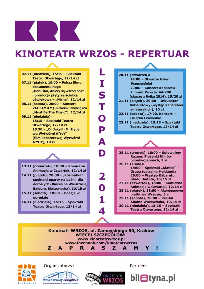 Więcej szczegółów na www.facebook.com/kinoteatrwrzos oraz www.kinoteatrwrzos.pl