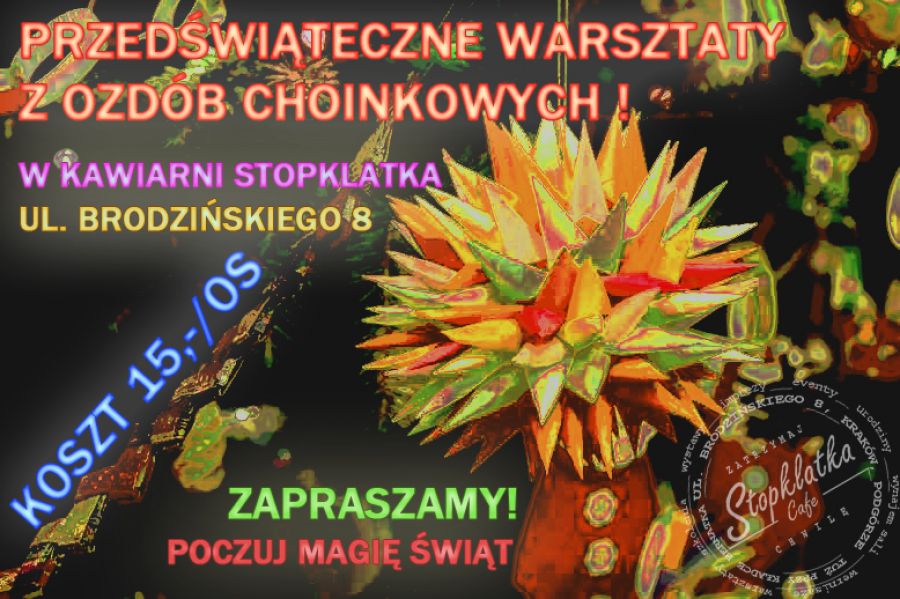 Podczas warsztatów, w ciepłej, przedœwištecznej atmosferze, nauczymy się samodzielnego wykonania ozdób choinkowych w niezwykle prosty i efektowny sposób.