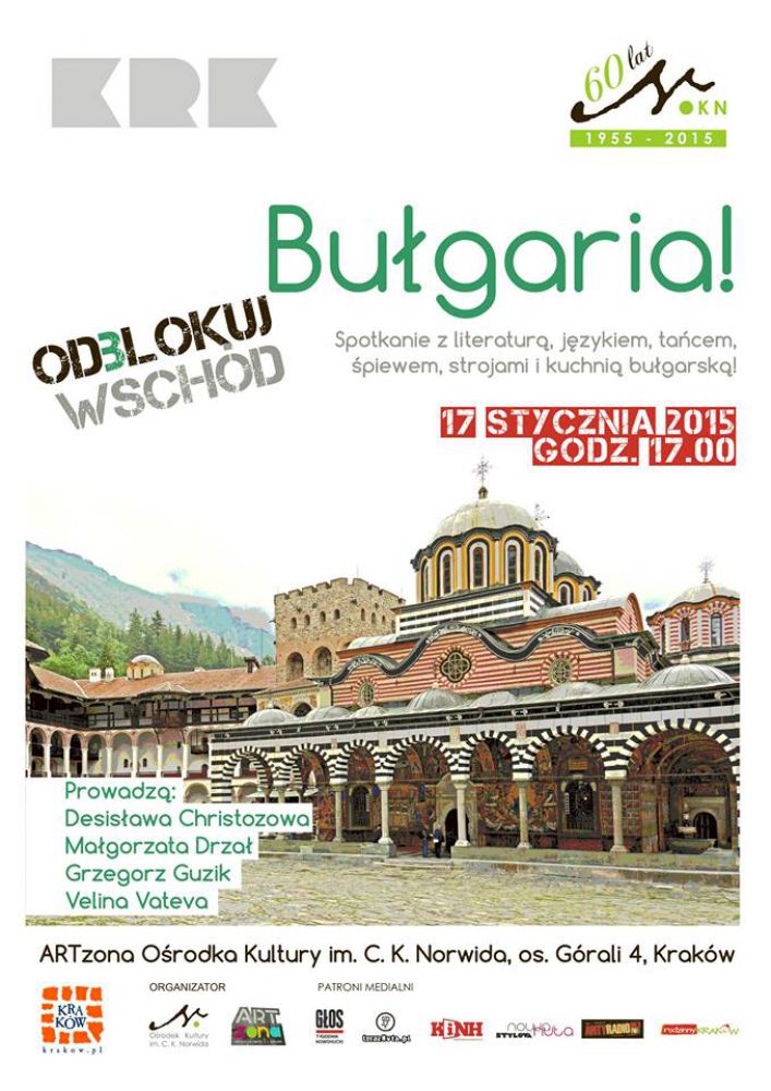 Do wiata bułgarskiej kultury, literatury i sztuki zaprowadzš nas Desisława Christozowa, Małgorzata Drzał, Grzegorz Guzik, oraz Velina Vateva. Zapraszamy na spotkanie ze słowem, piewem, strojami i kuchniš bułgarskš.