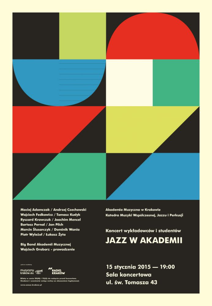 Niecodzienny pod względem doboru repertuaru i obsady instrumentalnej będzie koncert organizowany przez Akademię Muzycznš w Krakowie, który odbędzie się w czwartek 15 stycznia w Sali Koncertowej przy ul. w. Tomasza 43 o godzinie 19:00. W zupełnie inny wiat muzyki, niż tradycyjne akademickie koncerty, przeniesie nas Big Band Akademii Muzycznej pod kierunkiem Wojciecha Groborza oraz plejada wykładowców muzyki jazzowej naszej Uczelni (m. in. Tomasz Kudyk, Ryszard Krawczuk, Joachim Mencel, Jan Pilch, Dominik Wania, Piotr Wyleżoł). Koncerty Big Bandu, jak również prezentacje innych obsad instrumentalnych wydziału Katedry Muzyki Współczesnej, Jazzu i Perkusji, gromadzš każdorazowo pokanš liczbę krakowskiej młodzieży. Z pewnociš stanie się podobnie i tym razem.