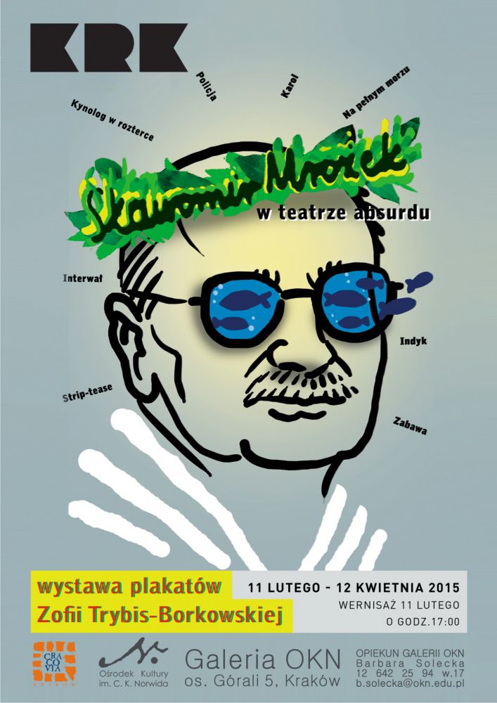 Galeria Oœrodka Kultury im C. K. Norwida w Krakowie zaprasza na wystawę plakatów Zofia Trybis-Borkowskiej pt. „Sławomir Mrożek w tatrze absurdu”.