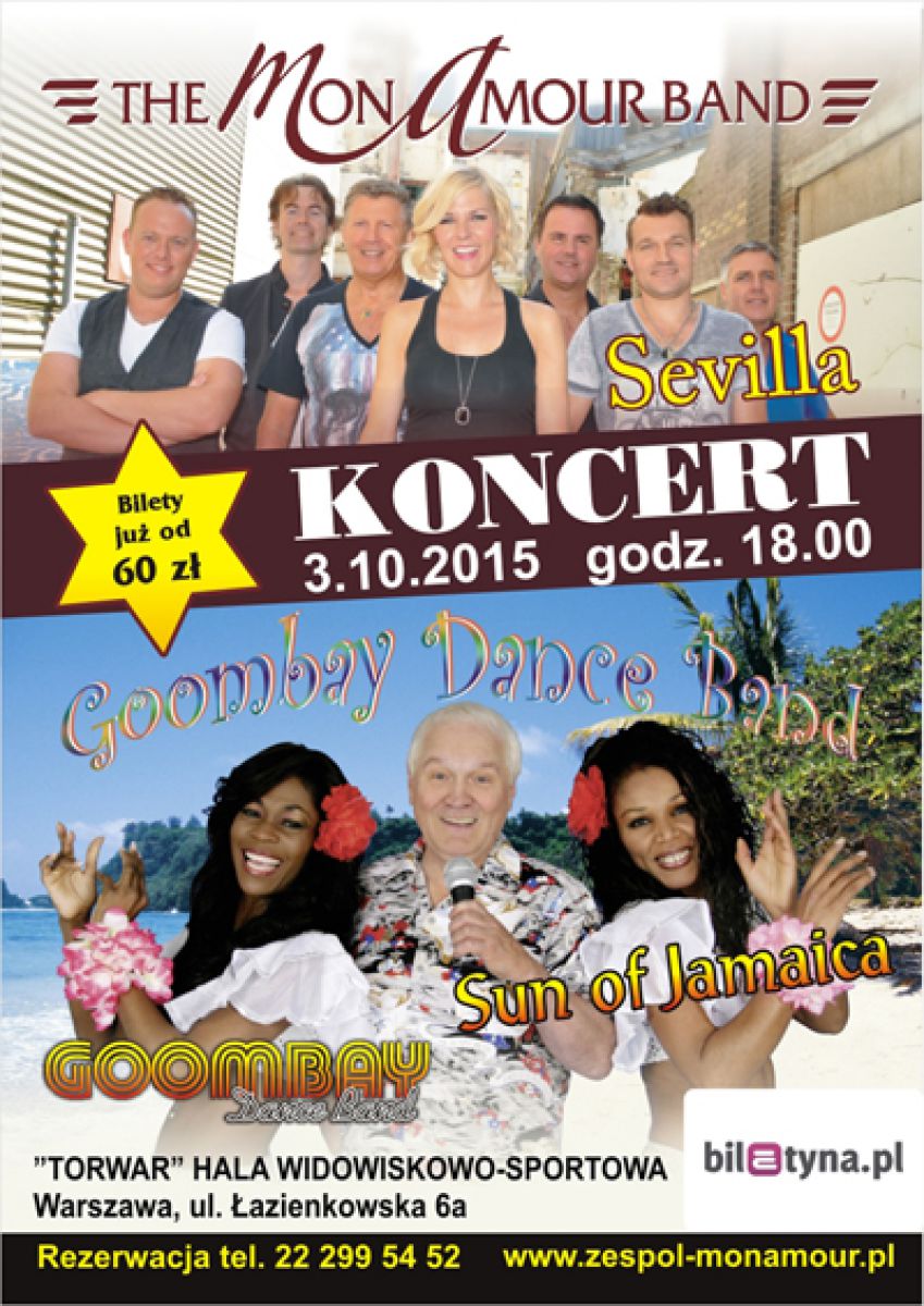 Zapraszamy do Warszawy, 3.10.2015. na godz. 18.00. Gociem naszej gwiazdy, zespołu Mon Amour będzie grupa Goombay Dance Band. Podczas tego koncertu, obok znanych i lubianych utworów Mon Amour usłyszymy legendarne hity Goombay Dance Band, takie jak: Sun of Jamaica, Seven Tears czy też Eldorado.