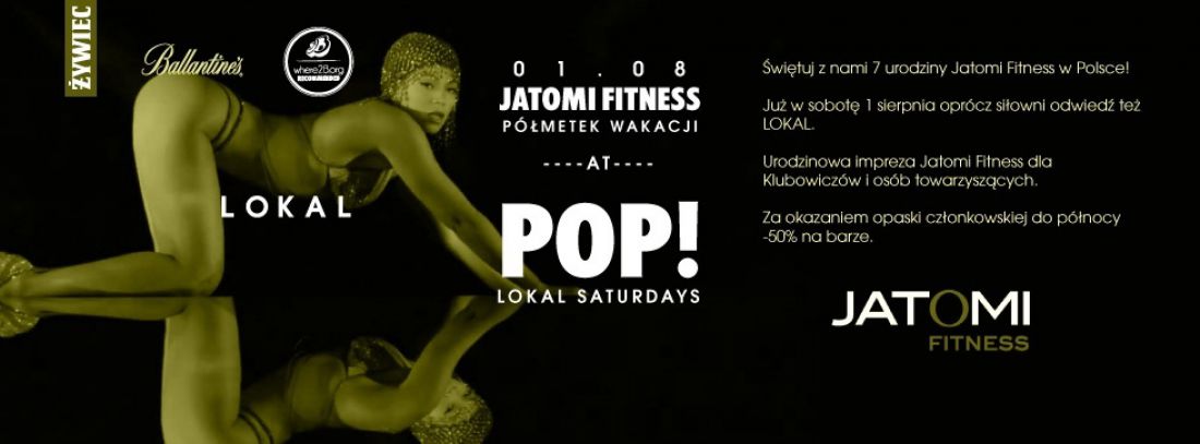 Pure Jatomi Fitness wraz z klubem LOKAL więtuje półmetek lata w rytmie muzyki pop. Jeli marzysz o wietnej zabawie w towarzystwie ludzi kochajšcych sport, nie może Cie zabraknšć. Mamy dla Was mnóstwo gadżetów, nagród i wiele niespodzianek, które możecie zdobyć poprzez uczestnictwo w sobotniej imprezie.
