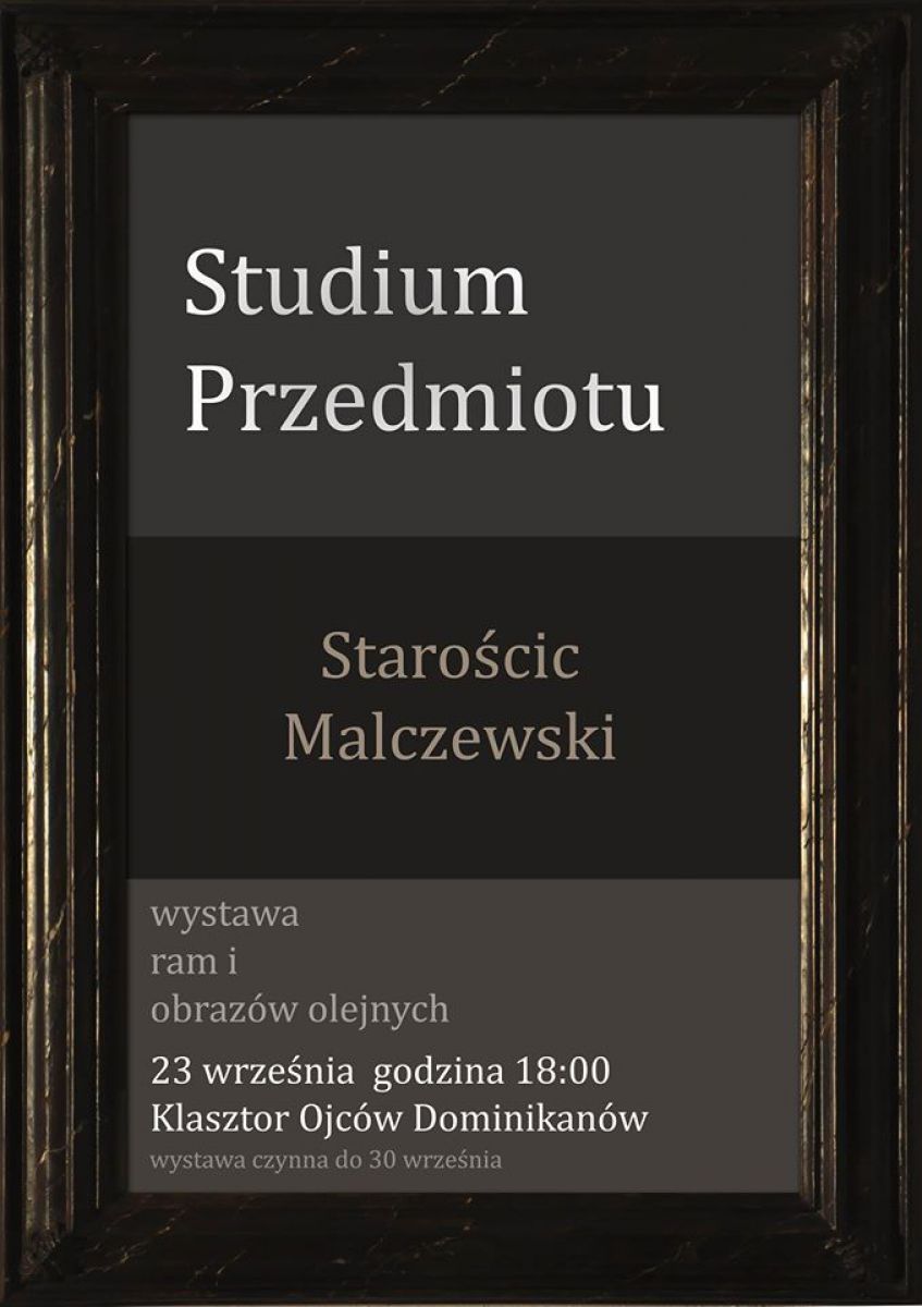 Piotr Staroœcic i Maciej Malczewski majš zaszczyt zaprosić na wystawę ram i obrazów olejnych w Klasztorze Ojców Dominikanów w Krakowie. Wystawa nosi tytuł "Studium przedmiotu” i jest inspirowana twórczoœciš Zbigniewa Herberta. Młodzi artyœci zadajš pytanie – czy sztuka nie jest rodzajem alchemicznej transmutacji? Z Pigmentów rozpuszczonych w oleju powstajš przedmioty prawdziwsze od prawdziwych, z materii drewna powstajš dzieła o niezwykłej precyzji i harmonii. Sztuka zaprasza do kontemplacji rzeczy wzgardzonych, jednostkowych, odbiera im banalnš przypadkowoœć, i oto zwykły dzbanek znaczy więcej niż znaczy, jakby był sumš wszystkich dzbanków - esencjš gatunku. Rama która zazwyczaj uchodzi za estetyzujšcy dodatek, staje się dopełnieniem dzieła w jego wymiarze znaczeniowym i formalnym. Zatem nie jest to jedynie wystawa oprawionych obrazów, ale oddziałujšcych na siebie przedmiotów. Owo, zderzenie realnego przedmiotu z iluzjš malarskš jest pretekstem nad zastanowieniem się - czy dana nam rzeczywistoœć obarczona jarzmem niepewnoœci, posiada coœ szlachetnie stałego, prawdziwego, godnego zaufania? Zaprezentowane na wystawie dzieła utrzymujš dialog z siedemnastowiecznym malarstwem holenderskim, jednak gust przeszłoœci nie musi oznaczać ucieczki od teraŸniejszoœci. Historia sztuki daje nam możliwoœć konfrontowania swojego doœwiadczenia z doœwiadczeniem innych, zdobycie czegoœ co Zbigniew Herbert nazywał - uniwersalnym współczuciem i odpowiedzialnoœciš za stan sumień. Stare jest marzenie artysty aby jego twór stał się przedmiotem konkretnym, by tworzony w podlegajšcej cišgłym zmianom materii sztuki uzyskał byt trwały. Strefš działalnoœci twórcy, jeżeli ma on poważny stosunek do swojej pracy, nie jest współczesnoœć, przez którš rozumiemy aktualny stan społeczno - polityczny i naukowy - ale rzeczywistoœć, uparty dialog człowieka z otaczajšcš go rzeczywistoœciš konkretnš, z tym stołem, z tym dzbankiem, z tš porš dnia, kultywowanie zanikajšcej umiejętnoœci kontemplacji. Jednym ze sposobów obdarzenia dzieła trwałoœciš, wydaje się odrzucenie go daleko poza siebie, zatarcie zwišzków jakie łšczš go z twórcš. Tak można rozumieć zalecenie Flauberta: "Artysta powinien ukrywać się w swojej twórczoœci, podobnie jak Bóg nie ukazuje się w przyrodzie”.