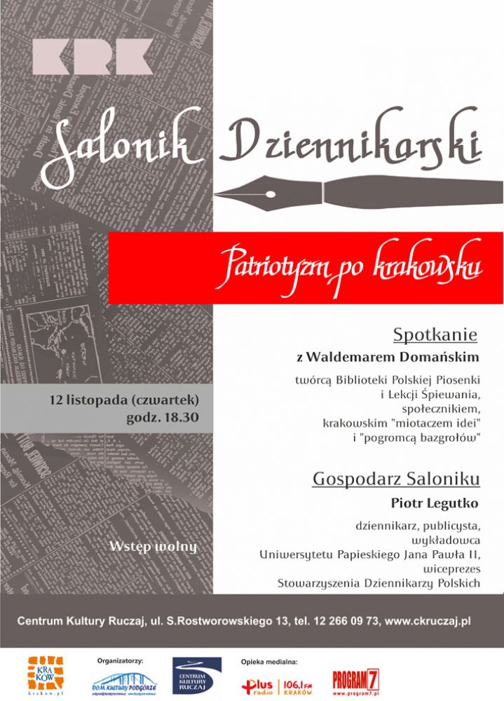 Centrum Kultury "Ruczaj" zaprasza na spotkania i dyskusje z ciekawymi osobowoœciami, celebrytami, politykami i znanymi ekspertami w ramach Saloniku Dziennikarskiego.