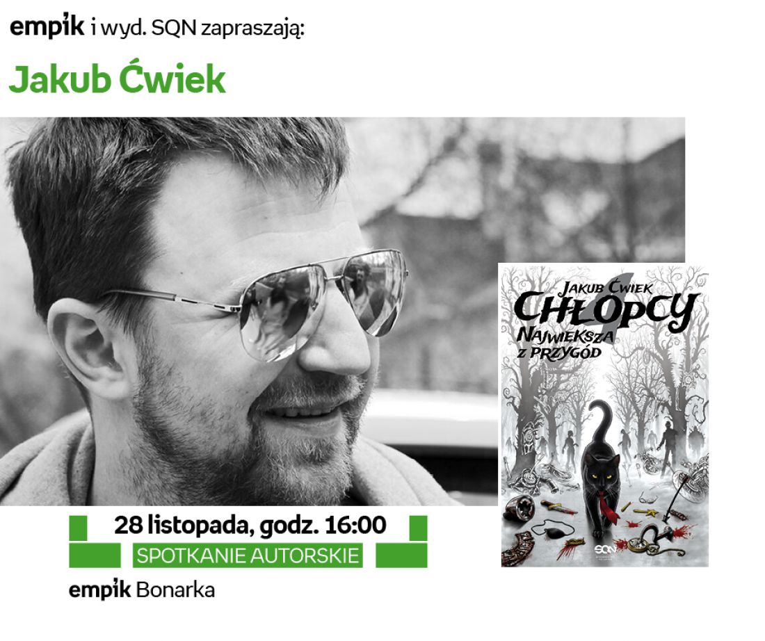 Ulubiony pisarz młodego pokolenia wraca z nowš częciš przygód Cienia i Piotrusia. Chłopcy 4. Największa z przygód (wyd. SQN) to brawurowy finał bestsellerowej serii. Z okazji premiery Jakub Ćwiek spotka się z czytelnikami w Empiku w krakowskiej Bonarce już w sobotę, 28 listopada.