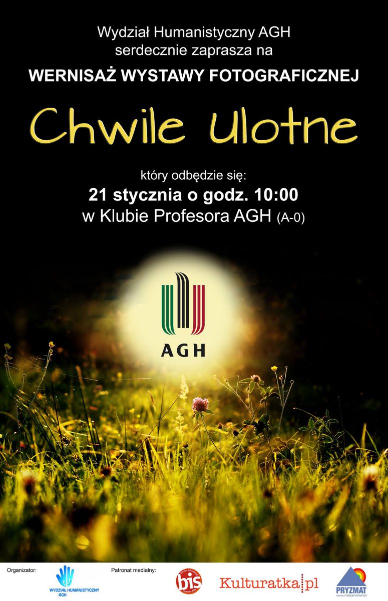Studenci II roku kulturoznawstwa WH AGH zapraszaj wszystkich na wystaw fotograficzn "Chwile ulotne". Zaczynamy 21.01. o godz. 10:00 w Klubie Profesora (budynek A-O). Przyjdcie zobaczy co przygotowalimy!