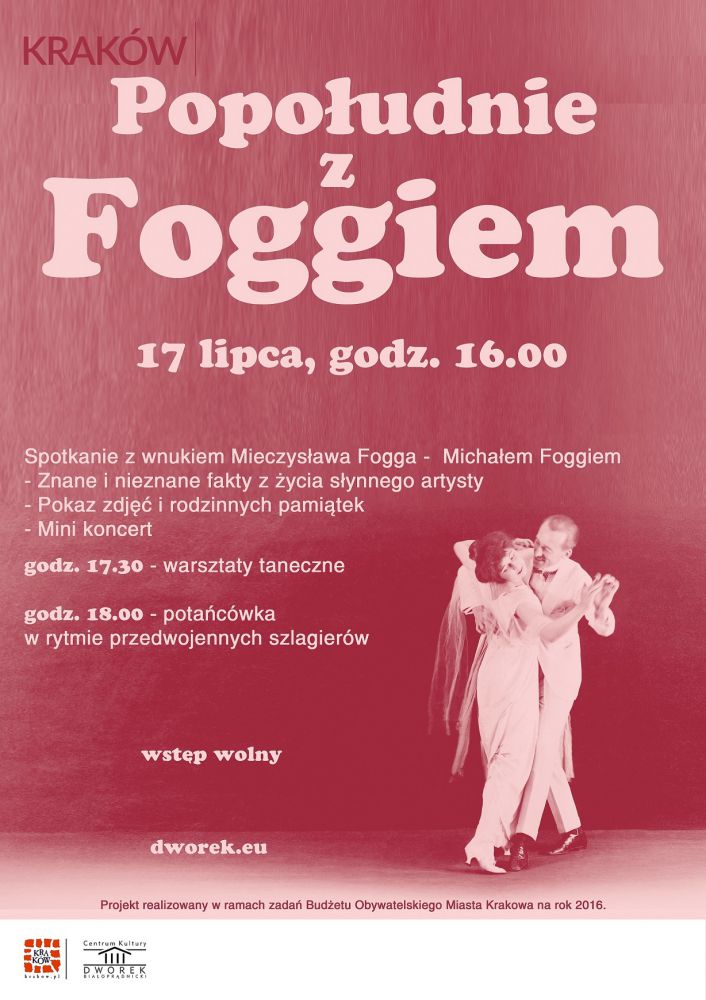 Dworek Białopršdnicki zaprasza na niezwykłe "Popołudnie z Foggiem". Znane i nieznane fakty z życia artysty, pamištki, mini koncert, a na zakończenie - potańcówka w rytmie przedwojennych szlagierów. Wydarzenie odbędzie się w niedzielę 17 lipca o godz. 16.00. Wstęp wolny.