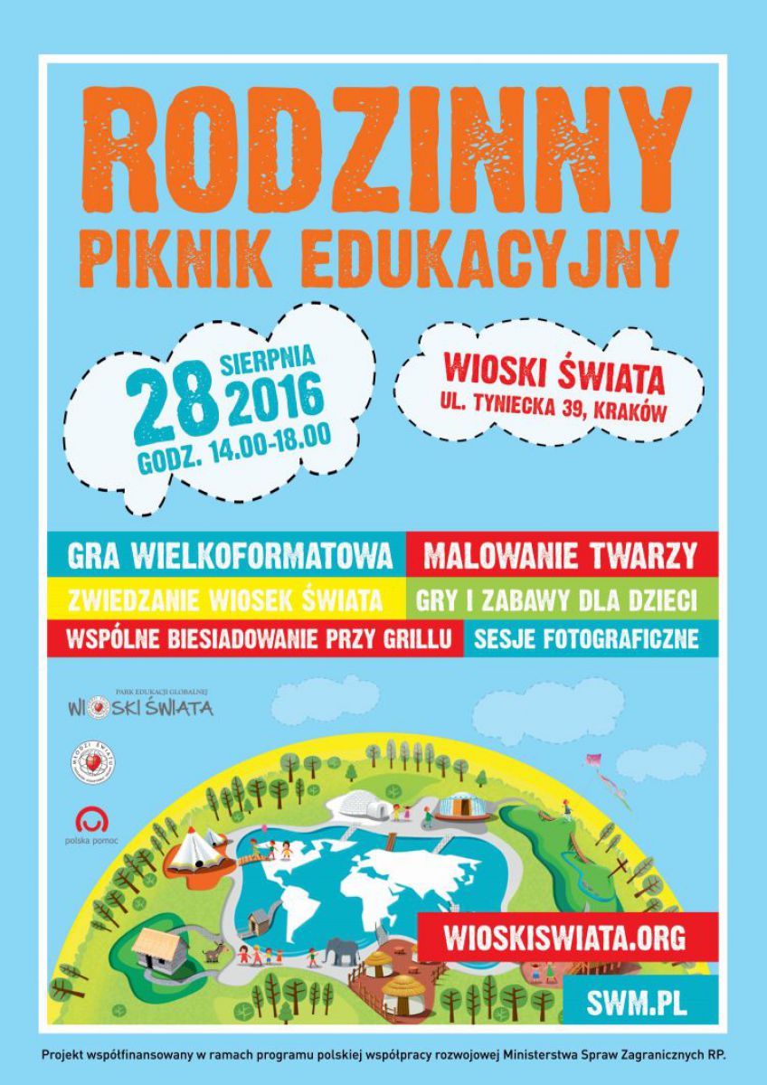 Zapraszamy do Wiosek Œwiata na Rodzinny Piknik Edukacyjny. Każdy obieżyœwiat będzie mógł odwiedzić afrykańskš wioskę, wczołgać się do arktycznego igloo, zobaczyć mongolskš jurtę, indiańskie tipi i papuaskš chatę. Nie zabraknie też dodatkowych atrakcji - strzelanie z łuku, warsztaty balonowe, dojenie jaka, bicie w bębny, malowanie twarzy i wspólne biesiadowanie przy grillu. To wszystko i jeszcze więcej 28 sierpnia od godziny 14:00 w Parku Edukacji Globalnej przy ul. Tynieckiej 39 w Krakowie.
