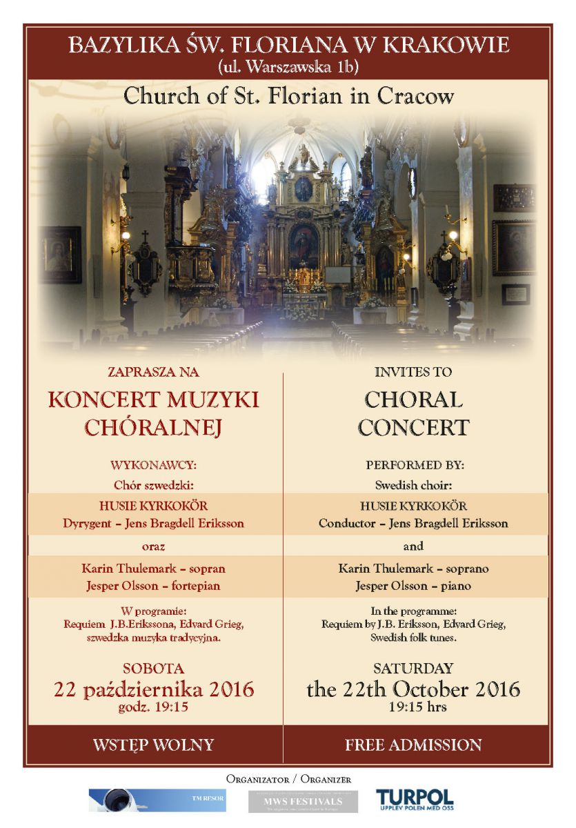 Recital chóru szwedzkiego Husie Kyrkokör z towarzyszeniem: