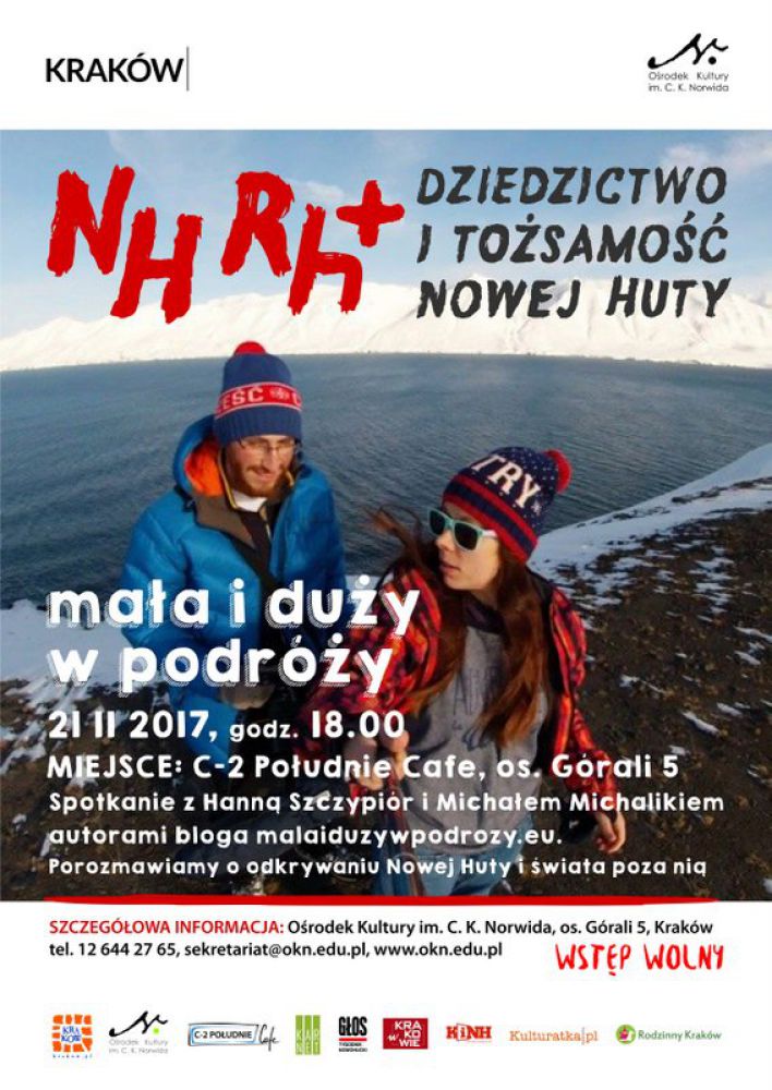 Spotkanie z Hannš Szczypiór i Michałem Michalikiem - autorami bloga malaiduzywpodrozy.eu. Porozmawiamy o odkrywaniu Nowej Huty i wiata poza niš. Wstęp wolny.