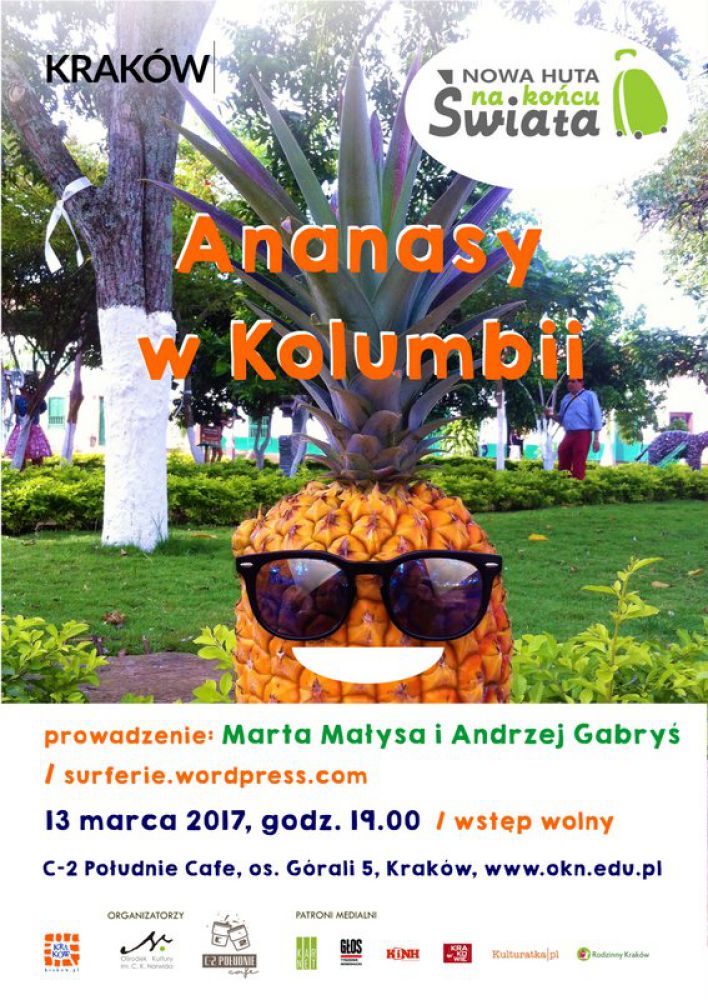 Przez pięć miesięcy przemierzaliœmy Amerykę Łacińskš – od półwyspu Jukatan w Meksyku, aż po Boliwię. Na spotkaniu opowiemy o naszym przystanku w Kolumbii, do której poczštkowo wcale nie planowaliœmy pojechać, a która zachwyciła nas przyrodš, życzliwoœciš jej mieszkańców oraz smakiem soczystych owoców.