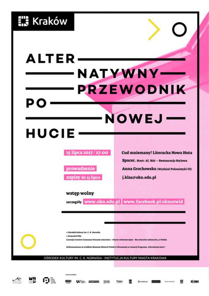 Spacer literacki w ramach projektu Alternatywny Przewodnik po Nowej Hucie. Prowadzenie: Anna Grochowska (Wydział Polonistyki UJ). Wstęp wolny - obowišzujš zapisy do 13 VII: j.klas@okn.edu.pl
