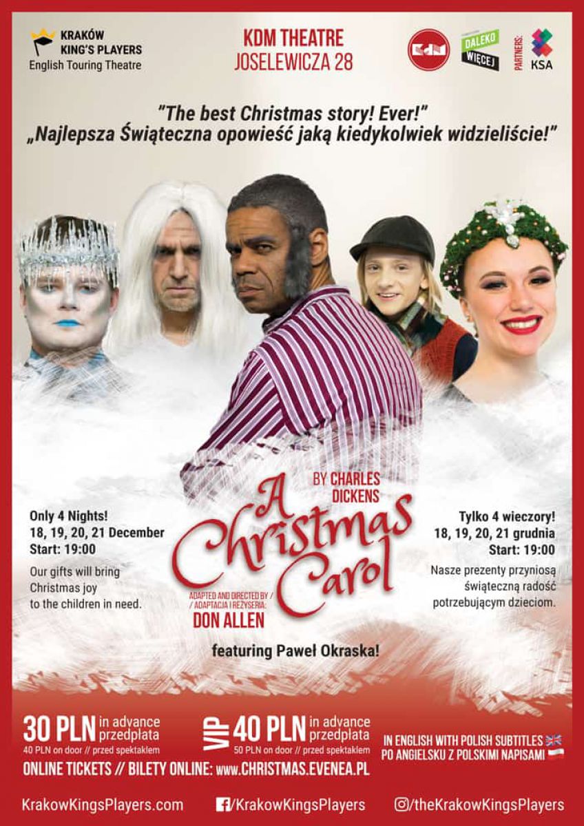 W zwišzku z nadchodzšcym sezonem bożonarodzeniowym pragniemy zaprosić Państwa na nasze najnowsze przedstawienie klasyczna bożonarodzeniowa opowieć Karola Dickensa A Christmas Carol, w której podziwiać będzie można krakowskiego aktora filmowego i teatralnego Pawła Okraskę.