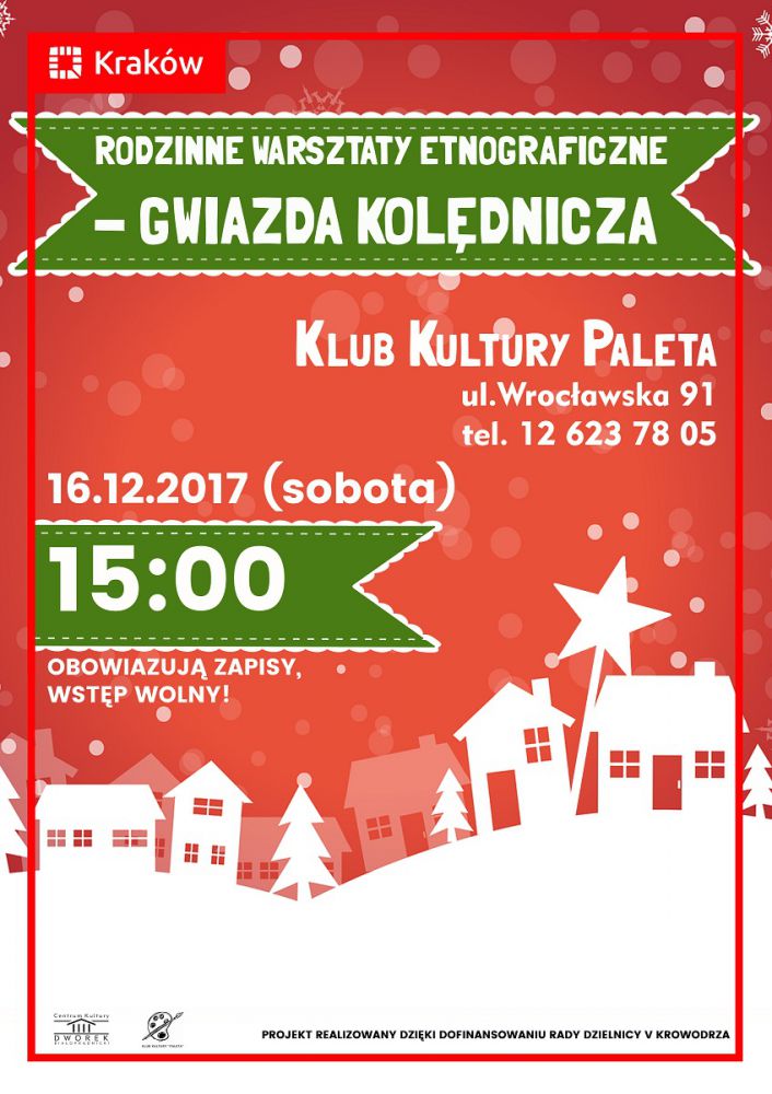 Będzie to ostatnie w tym roku i ostatnie z cyklu naszych rodzinnych etnograficznych spotkań. Tym bardziej serdecznie zapraszamy do Klubu Kultury Paleta, filii Centrum Kultury Dworek Białopršdnicki tłumnie całe rodziny.