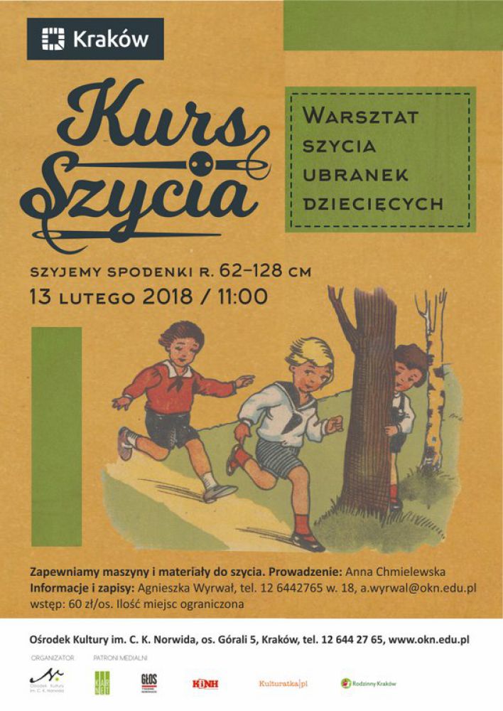 Warsztat szycia, podczas którego uczestnicy zdobędš podstawowš wiedzę na temat obsługi maszyny do szycia oraz uszyjš modne dziecięce spodenki w rozmiarze 62-128 cm.
