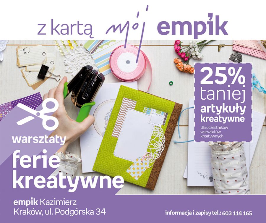 Zapraszamy na warsztaty kreatywne w drugim tygodniu ferii do Empiku Kazimierz. W programie: