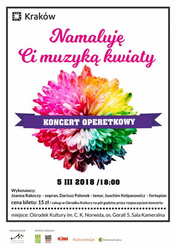 Koncert artystów promujšcych muzykę operetkowš i musicalowš. Wystšpiš Joanna Rakoczy (sopran), Dariusz Palonek (tenor) i Joachim Kołpanowicz (fortepian).
