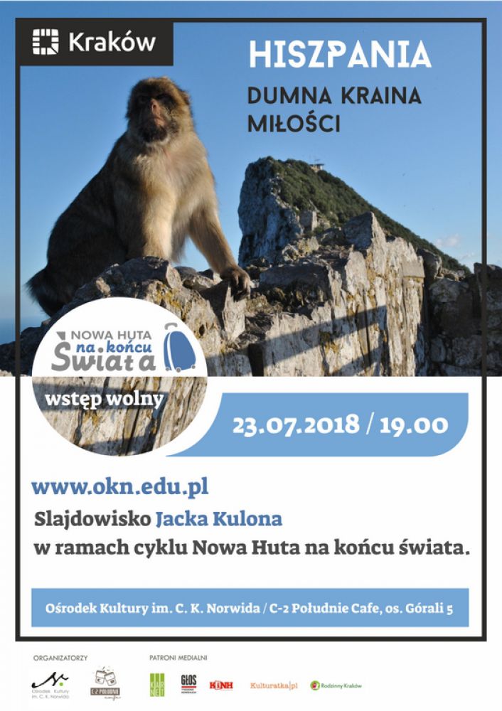 Slajdowisko Jacka Kulona - socjologa, podróżnika, pisarza, wielkiego miłoœnika i pasjonata Hiszpanii, autora ksišżki pt. "Hiszpania - dumna kraina miłoœci" w ramach cyklu Nowa Huta na końcu œwiata. Wstęp wolny.