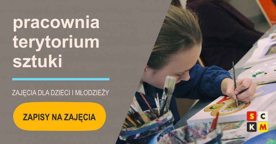 PRACOWNIA TERYTORIUM SZTUKI – warsztaty plastyczne dla tych, którzy pragnš w przyjaznej atmosferze zgłębiać tajniki sztuk plastycznych, eksperymentować w zakresie różnych technik i form ekspresji. Zajęcia rozbudzajš wyobraŸnię i wrażliwoœć artystycznš, dostosowane do indywidualnych potrzeb i zainteresowań dziecka. Przygotowujš do udziału w przeglšdach plastycznych, wystawach prezentujšcych osišgnięcia uczestników, konkursach ogólnopolskich. W cišgu roku poznajemy kilkanaœcie technik plastycznych m.in. grafikę (linoryt), gipsoryt, suchš igłę, monotypię; malarstwo (akwarelę), akryl, temperę, ecoliny; rysunek (węgiel), pastel oraz inne techniki mieszane. Wykonujemy formy przestrzenne z papier mache, gipsu, drutu. Zajęcia dla dzieci i młodzieży w wieku od 5 do 16 lat.