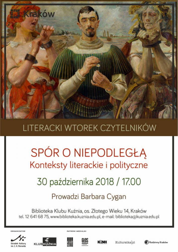 Spór o Niepodległš. Wolnoć jako stan przejciowy? Przełomy polskie od powstań do Polski zaczęły się jeszcze w czasach zaborów. Spucizna literacka pisarzy polskich poczynajšc od wielkich romantyków i pozytywistów, przekształcona została w myl politycznš głównych konstruktorów niepodległej Polski m.in. Romana Dmowskiego i Józefa Piłsudskiego. Jaka Polska, endecka, socjalistyczna, liberalna, a może jeszcze inna? To pytanie okazuje się aktualne również dzisiaj. Wstęp wolny.