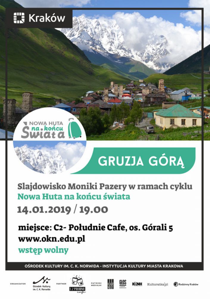 Gruzja to kraj winem i winem płynšcy, o czym powszechnie wiadomo, ale oprócz wina jej największym bogactwem sš imponujšce góry Kaukazu. Monumentalne szczyty, zbocza pokryte kobiercami kwiatów, majestatyczne lodowce i powalajšce swoim pięknem doliny. Orodek Kultury im. C. K. Norwida zaprasza wraz z Monikš Pazerš na wirtualny trekking przez najciekawsze zakštki gruzińskich gór, te najbardziej popularne oraz te najdziksze i jeszcze mało znane. Wyprawę ubarwiš opowieci o gruzińskich tradycjach, przysmakach i przygodach. Wstęp wolny.