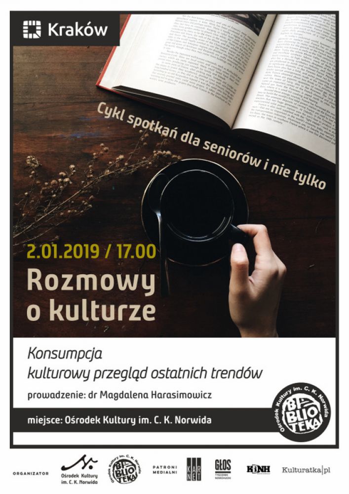 Choć o kulturze powiedziano już wiele, refleksja nad niš jest wcišż aktualna. Biblioteka Orodka Kultury im. C. K. Norwida zaprasza wszystkich chętnych do dyskusji nad szeroko pojętš kulturš oraz zdarzeniami, które wpłynęły na bieg historii, a których lady sš nadal widoczne. Spotkania będš odbywać się cyklicznie w pierwsze rody miesišca o godzinie 17.00 i będš miały charakter rozmowy kierowanej, podczas której uczestnicy dowiedzš się ciekawych faktów, a także będš mogli przy herbacie podzielić się swoimi spostrzeżeniami na temat bieżšcego zagadnienia. Mimo iż spotkania organizowane sš głównie z mylš o seniorach, mile widziane będš także osoby dorosłe w różnym wieku. Jak bowiem stwierdził Benjamin Franklin: nie starzeje się ten, kto nie ma na to czasu.