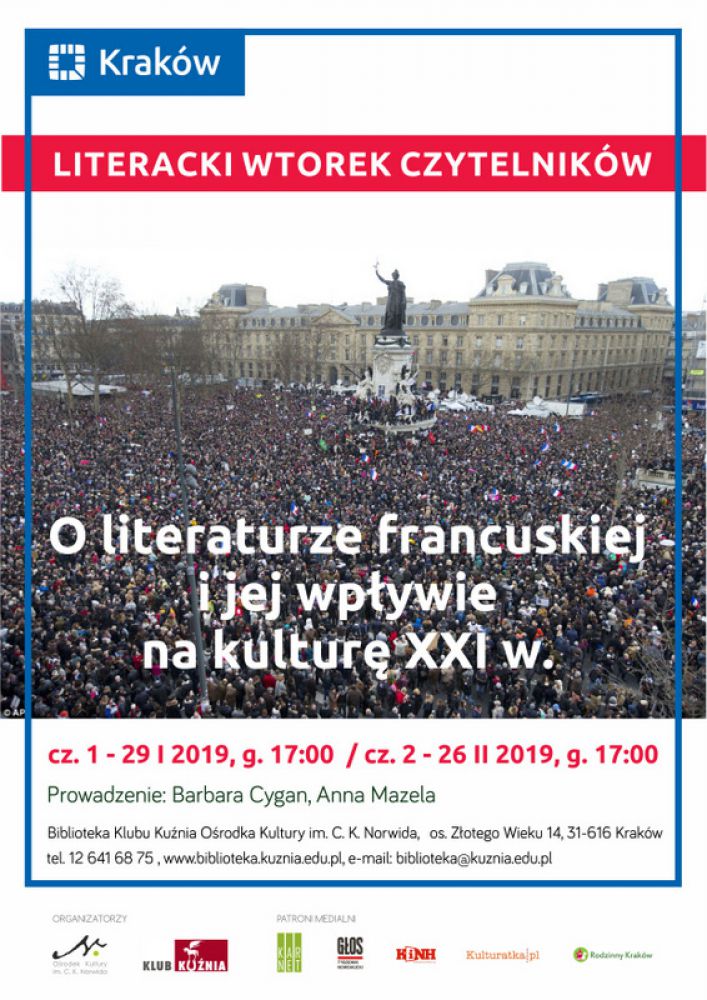 Współczesna literatura francuska ma się znakomicie. Co roku wydaje się we Francji przynajmniej kilka ksišżek, o których żywo się dyskutuje, które sš przekładane na wiele języków i stajš się wiatowymi bestsellerami. Zapraszamy na drugie spotkanie o współczesnej literaturze francuskiej, która poprzez bardzo dobre polskie wydawnictwa, m.in. Wydawnictwo Literackie, Znak, W.A.B., jest obecna również w Polsce. Wstęp wolny.