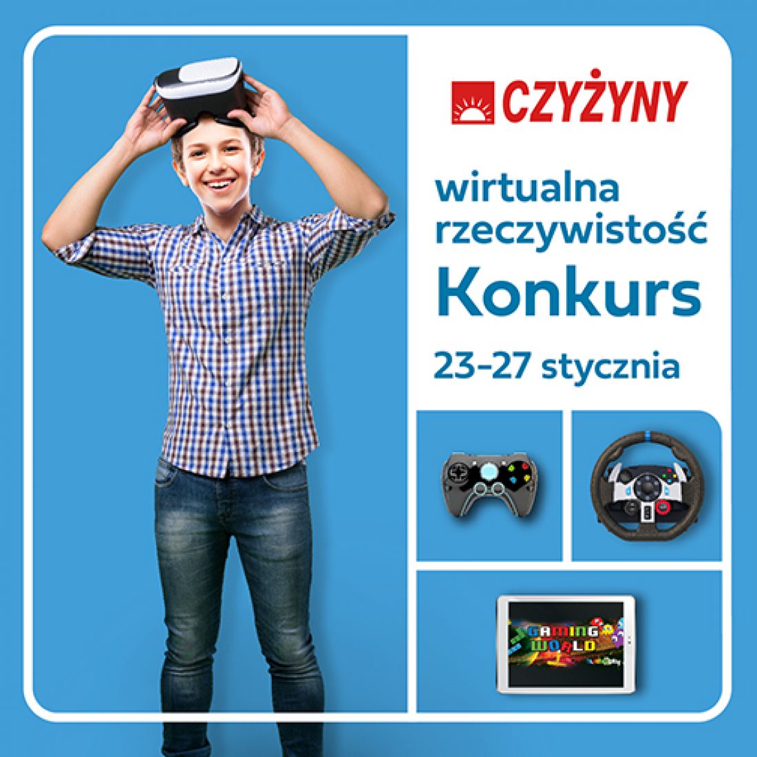 Aby wzišć udział w konkursie należy zamiecić komentarz pod postem konkursowym na fanpageu CH Czyżyny, który będzie odpowiedziš na pytanie: Jeli za pomocš wirtualnej rzeczywistoci moglibycie przenieć się w dowolne miejsce, to gdzie chcielibycie się znaleć?