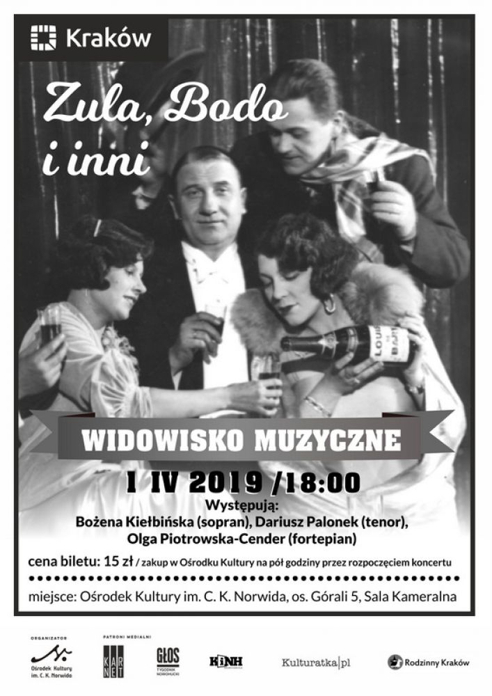 Orodek Kultury im. C. K. Norwida zaprasza na wieczór pełen humoru i dowcipu, który zawarty jest w piosenkach międzywojennych. Przypomnimy przeboje Zuli Pogorzelskiej, Eugeniusza Bodo oraz innych gwiazd filmu i kabaretu tamtych lat.