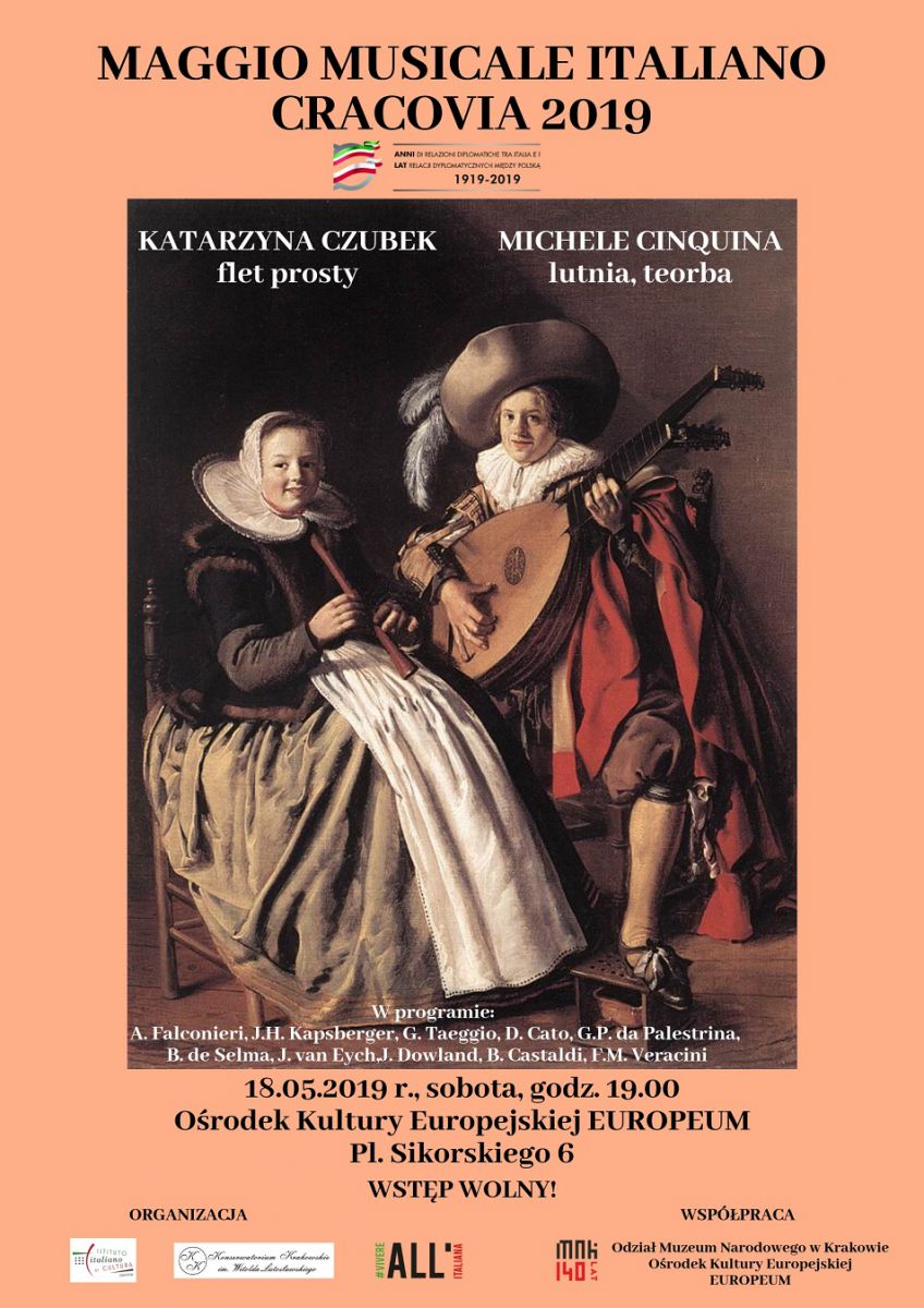 Włoski Instytut Kultury w Krakowie oraz Konserwatorium Krakowskie im. W. Lutosławskiego zapraszajš na koncert Festiwalu MAGGIO MUSICALE ITALIANO - CRACOVIA 2019
