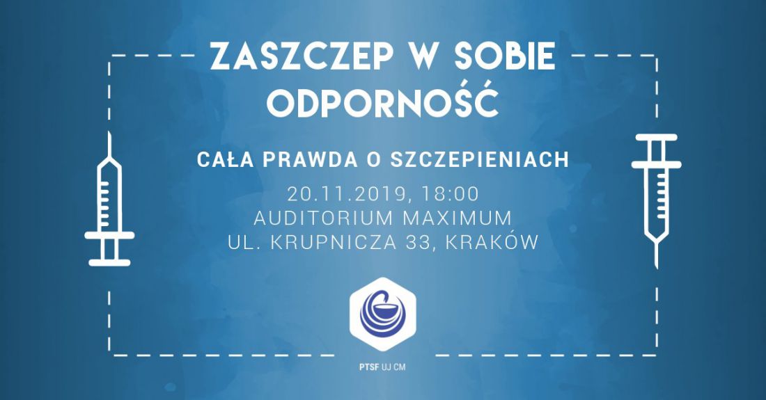 Z pomocš przychodzi konferencja Zaszczep w sobie odpornoć - cała prawda o szczepieniach organizowana przez Polskie Towarzystwo Studentów Farmacji UJ CM. Odbędzie się ona 20 listopada 2019 roku w Auditorium Maximum UJ przy ul. Krupniczej 33 w Krakowie. Patronat Honorowy nad wydarzeniem objšł prof. dr hab. Jacek Sapa - Dziekan Wydziału Farmaceutycznego UJ CM, kierownik Zakładu Wstępnych Badań Farmakologicznych Wydziału Farmaceutycznego UJ CM.