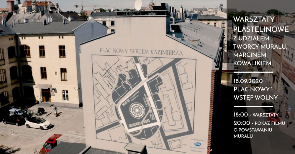 Chcc uczci to wydarzenie w pitek, 18 wrzenia niech zattni yciem Plac Nowy- serce krakowskiego Kazimierza. Owietlony i wypeniony muzyk Plac Nowy 1 zaprasza Was na warsztaty artystyczne Kolorowy Plac Nowy z udziaem twrcy muralu Marcina Kowalika poczone z wystaw dzie artysty oraz pokaz wizualizacji 3D prac nad powstaniem muralu z muzyk na ywo.