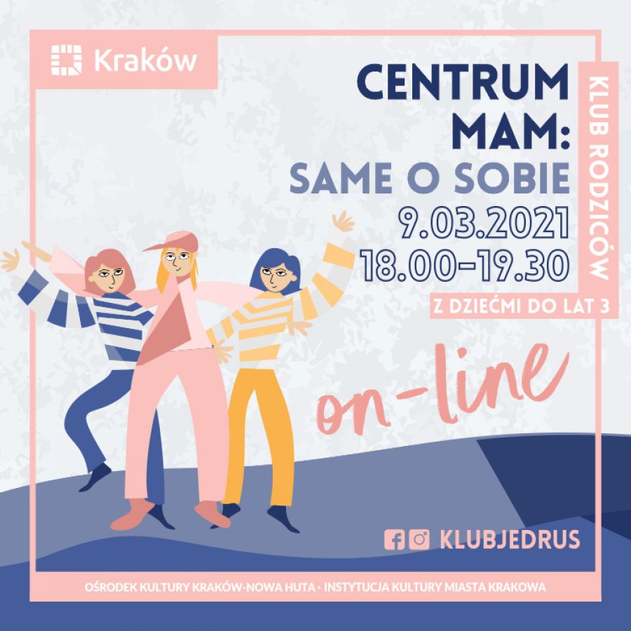 Klub Jędru Orodka Kultury Kraków-Nowa Huta zaprasza do Centrum Mam w Klubie Rodziców. W marcu w Centrum Mam zajmiemy się kobiecociš. Co ona właciwie znaczy? Każda z nas poszuka odpowiedzi dla samej siebie i porusza się w rytmie, który przyjdzie w trakcie tych poszukiwań. Jak zawsze działamy, żeby rozprężyć napięcia, obudzić i zrelaksować całe ciało, a przede wszystkim spotkać się ze sobš. Prowadzšca: Zofia Noworól-Ostrowska nauczycielka jogi klasycznej, choreografka, badaczka kultury. Prowadzi zajęcia improwizacji tańca, eksperymentalne działania ruchowe i praktyki zmysłowe. Założycielka Komuczemu - przestrzeni rozwoju osobistego. Szczęliwa mama. Spotkania odbywajš się w zamkniętej grupie Klubu Rodziców na Facebooku.