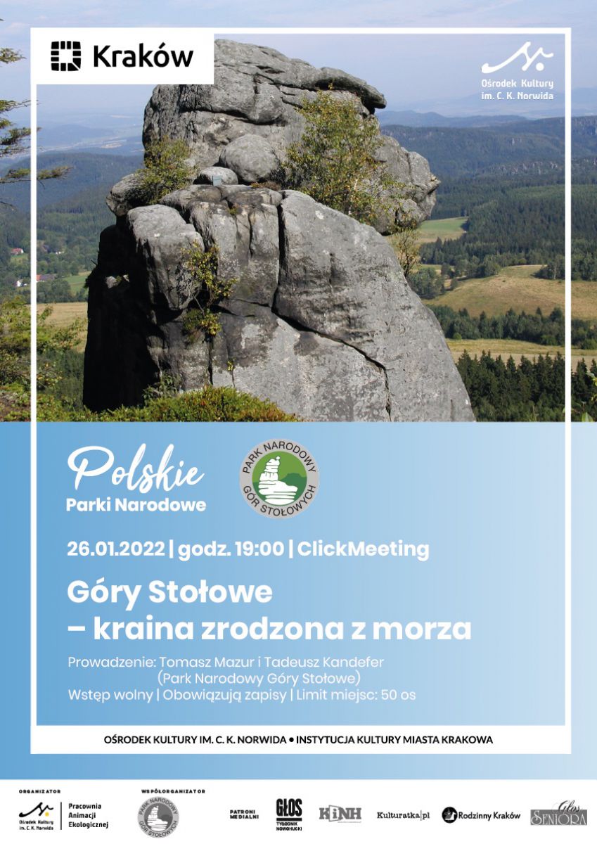Wstęp wolny. Zapisy na spotkanie: https://okn.clickmeeting.com/gory-stolowe-kraina-zrodzona-z-morza-/register.