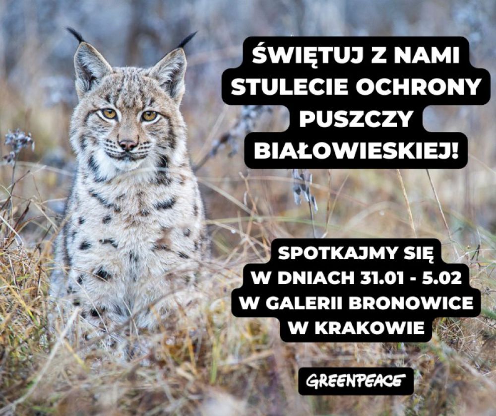 29 grudnia minęło 100 lat od wprowadzenia pierwszej formalnej ochrony Puszczy Białowieskiej, ostatniego lasu nizinnego o charakterze pierwotnym na naszym kontynencie. Z okazji tego wyjštkowego jubileuszu 31 stycznia na terenie Galerii Bronowice pojawiło się stanowisko Fundacji Greenpeace, która wspólnie z klientami centrum handlowego będzie œwiętowała okršgłš rocznicę wydarzenia. W specjalnie przygotowanym na tę okazję punkcie przedstawiciele organizacji proekologicznej opowiedzš wszystkim zgromadzonym, dlaczego Puszcza Białowieska jest miejscem wyjštkowym i z jakich powodów była i nadal powinna być chroniona. Inicjatywę będzie można wesprzeć poprzez zrobienie zdjęcia i opublikowanie go w mediach społecznoœciowych z #100latochronypuszczy.