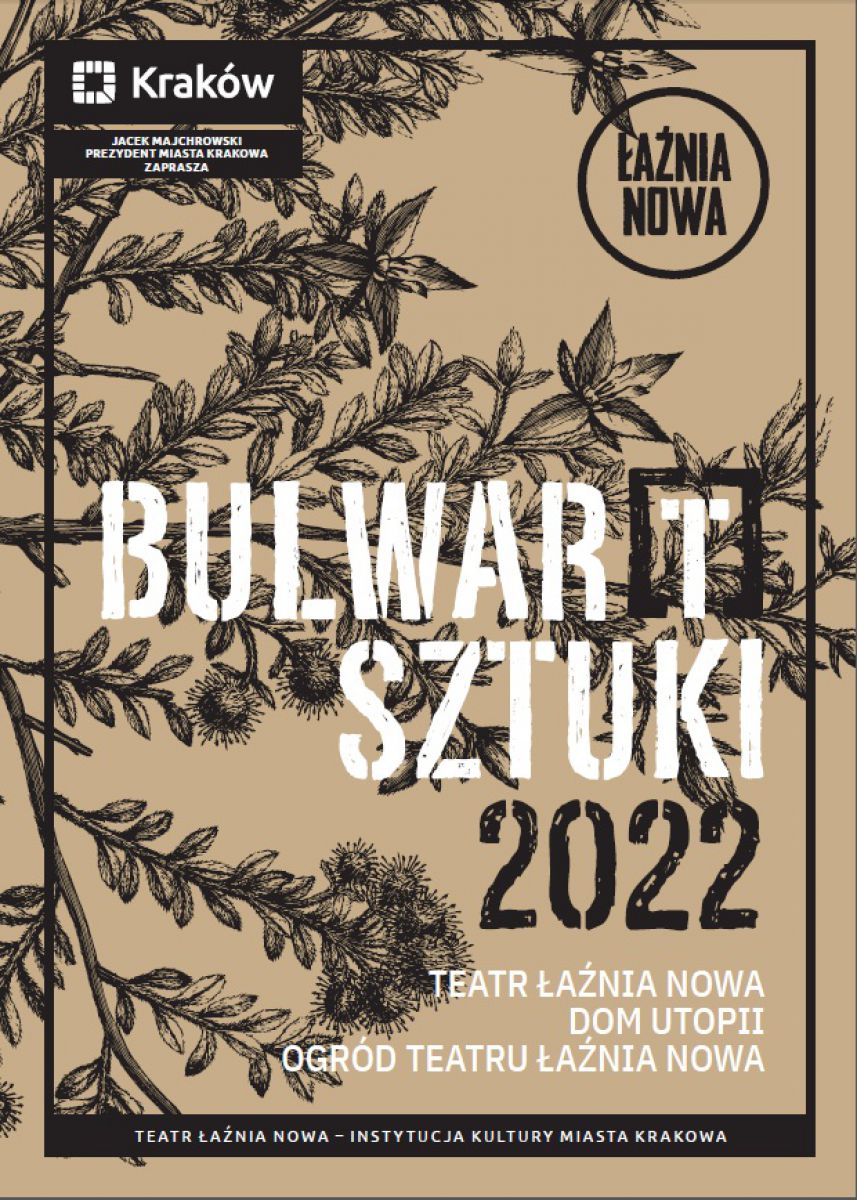 „Dla tych, którzy zamierzają spędzić lato w mieście, przygotowaliśmy bogaty program, dzięki któremu można będzie doświadczyć ekscytującej podróży do krainy wrażliwości i wyobraźni. Bulwar[t] Sztuki zmienia swoją przestrzeń działania. Nie wracamy już nad zdominowany przez hałas i tłum Zalew Nowohucki, ponieważ nie służy on już ulubionemu przez nas wyciszeniu i skupieniu. Przenosimy się do ogrodu Łaźni Nowej, w przestrzeń sceny i na dach Domu Utopii. Przygotowaliśmy ponad 90 wydarzeń kulturalnych, które zmienią osiedlową nudę w barwną przygodę. Przed nami dwa miesiące warsztatów, spektakli, filmów i koncertów. Będziemy wspólnie spacerować, smakować, słuchać, nasłuchiwać i tańczyć. Nauczymy się świadomie doświadczać audiosfery, w którą wsłuchamy się w ciało-skupieniu. Wspólnie popracujemy też nad otwarciem w ogrodzie Teatru Łaźnia Nowa oraz na dachu Domu Utopii pierwszego w Krakowie quiet urban garden, czyli miejskiego ogrodu ciszy.