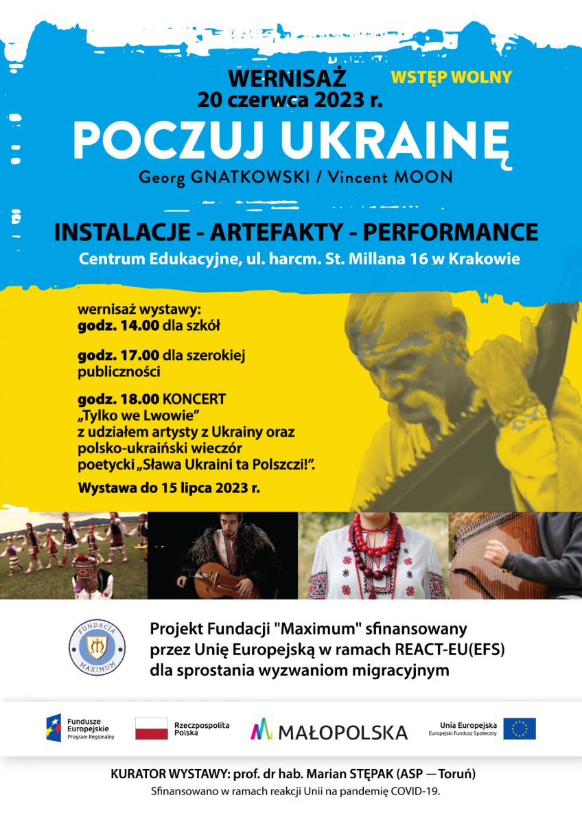 WYSTAWA "POCZUJ UKRAINĘ" w ramach Projektu Fundacji "Maximum" pn: "MY RAZOM". POLSKO-UKRAIŃSKA AKTYWIZACJA i INTEGRACJA KULTUROWO-SPOŁECZNO W SERCU MAŁOPOLSKI przy wsparciu Unii Europejskiej