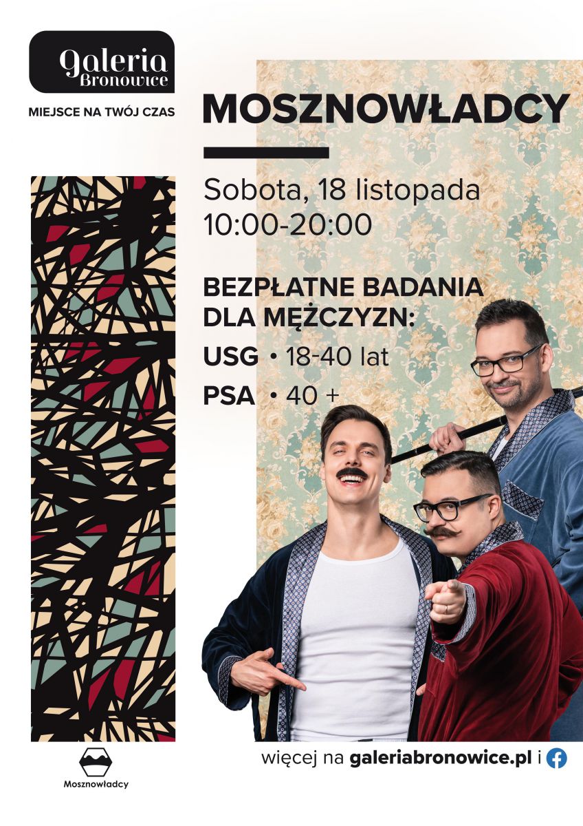 18 listopada do Krakowa przyjadą Mosznowładcy i ponownie otworzą swój gabinet w Galerii Bronowice. W ramach ogólnopolskiej kampanii mężczyźni będą mogli bezpłatnie skontrolować stan zdrowia intymnego. Badania są całkowicie bezbolesne i nie wymagają wcześniejszego przygotowania ani rezerwacji.