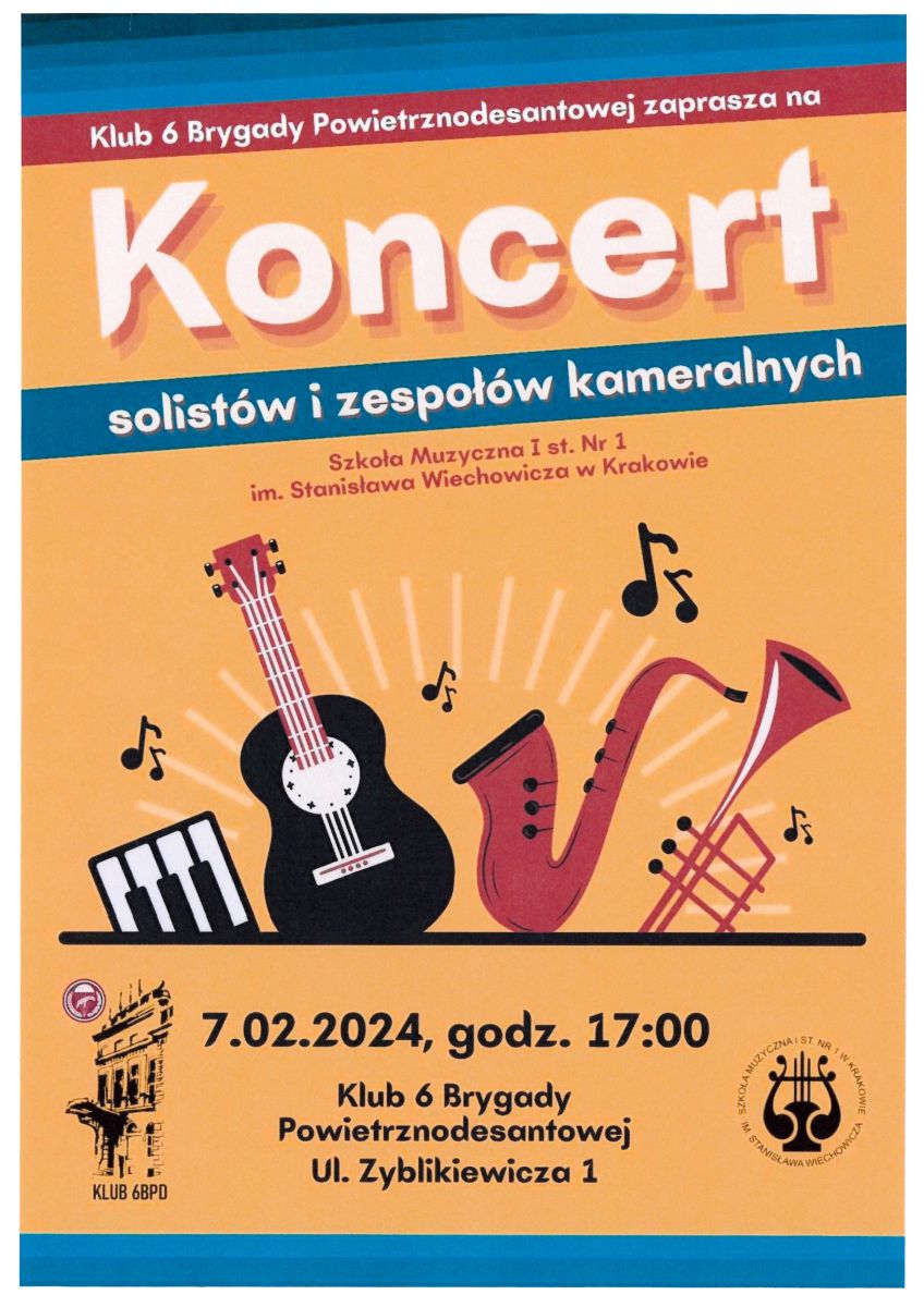 07 lutego br., o godz. 17.00 odbędzie się koncert solistów i zespołów kameralnych Szkoły Muzycznej I stopnia Nr 1 im. Stanisława Wiechowicza w Krakowie.