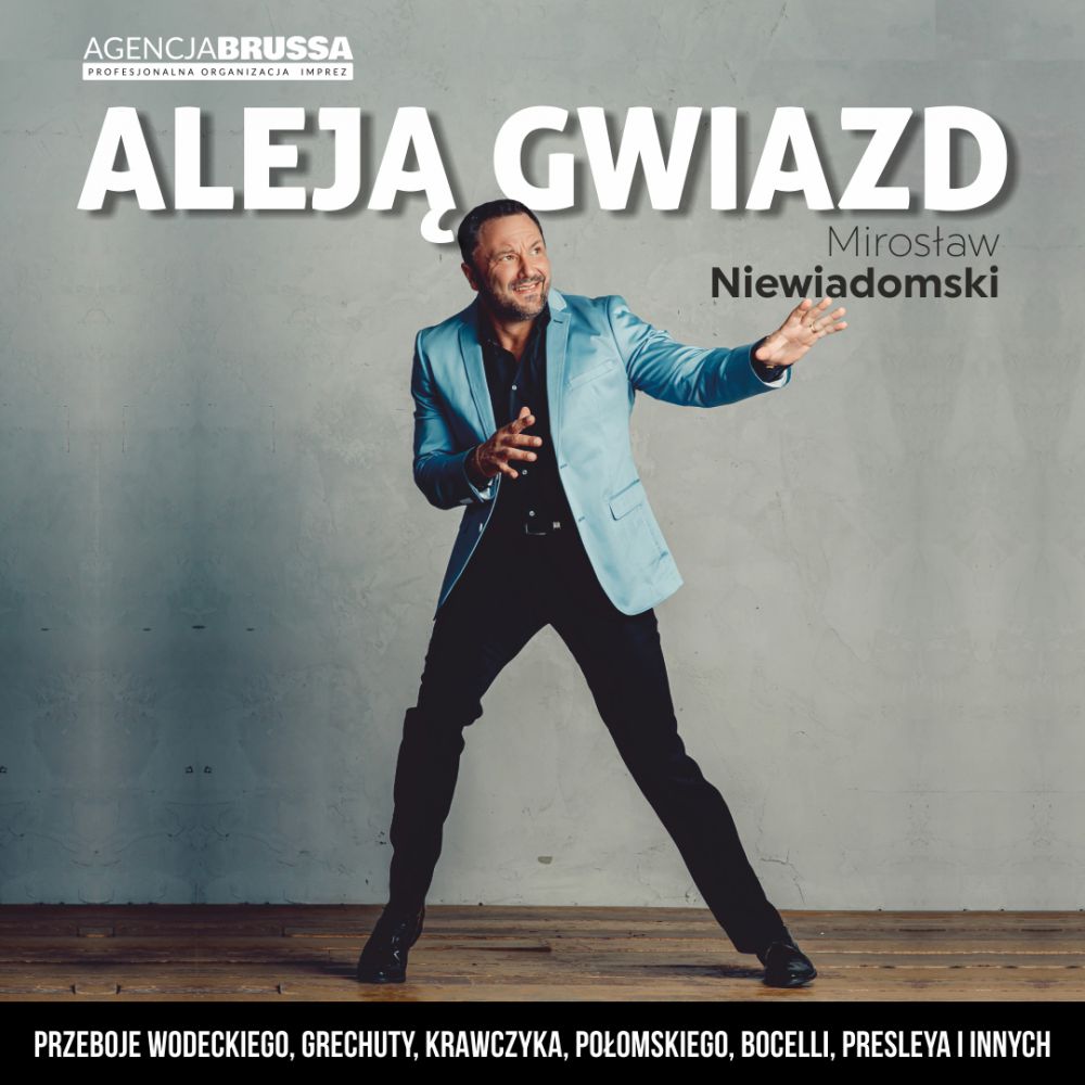 Zacznij od Bacha – no wiadomo, a jakże by inaczej... A potem? Potem będą Frank Sinatra, Elvis Presley, Julio Iglesias, Andrea Bocelli. Tyle gwiazd estrady jednego wieczoru? Oczywiście, pod warunkiem, że wystąpi Mirosław Niewiadomski, który zaprezentuje najpiękniejsze piosenki tych wokalistów. I to też jeszcze nie wszystko – podobnie jak Krzysztof Krawczyk obieca, że za Tobą pójdzie jak na bal, aby za chwilę powtórzyć za Zbigniewem Wodeckim, że lubi wracać. Wraz z Markiem Grechutą przyrzeknie "Będziesz moją Panią", ale postawi warunek: „Nie dokazuj, miła, nie dokazuj". I chociaż zgodzi się z Andrzejem Rybińskim, że nie liczy godzin i lat, to kiedyś wreszcie nadejdzie finał koncertu, na którym zapowie niczym Jerzy Połomski, że cała sala śpiewa z nami... Zapraszamy zatem na Aleję Gwiazd, po której poprowadzi Państwa Mirosław Niewiadomski!
