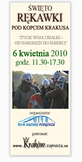Czy to tylko odpust odbywajšcy się w trzeci Dzień wišt Wielkanocnych pod Kociółkiem w. Benedykta, czy też lad prastarych obrzędów słowiańskich? Od 2001 roku Dom Kultury "Podgórze" organizuje Rękawkę w innej formie - wraca do jej prasłowiańskich korzeni - umożliwiajšc cofnięcie się w czasie o szeć wieków. Pod Kopcem Krakusa można zobaczyć jak wyglšdało życie we wczesnoredniowiecznych osadach, rzemiosło, uzbrojenie, stroje. Można spróbować potraw gotowanych według przepisów naszych przodków i zobaczyć jak wyglšdały redniowieczne potyczki zbrojne. Uzupełnieniem jest możliwoć poznania historii Kopca Krakusa, państwa Wilan i Polan.