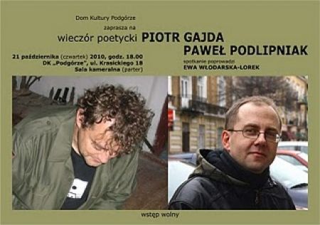 W cyklu Podgórska Scena Poezji wystšpiš PIOTR GAJDA oraz PAWEŁ PODLIPNIAK.