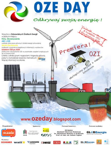 OZE Day to jedyne w swoim rodzaju wydarzenie będšce synergiš targów i wystaw o tematyce zwišzanej z odnawialnymi ródłami energii. Najwięksi producenci przedstawiš swoje innowacyjne rozwišzania. Ponadto dzięki krótkim i interesujšcym wykładom poznasz każdš z gałęzi wykorzystania odnawialnych ródeł energii. Dotknij kolektora słonecznego, przejd szlakiem OZE po AGH i wygraj atrakcyjne nagrody! Odwied nas i Odkryj Swojš Energię!