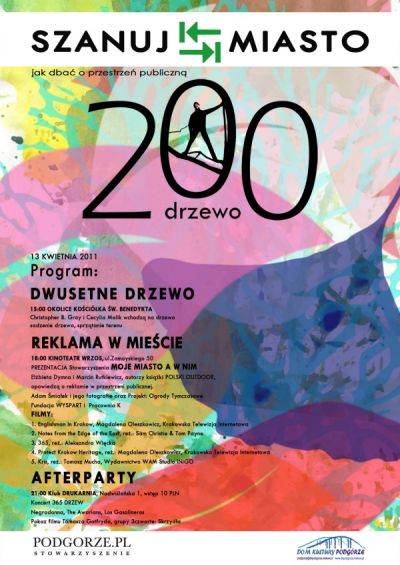W 2010 roku krakowscy urzędnicy wydali zgodę na wycinkę 20 785 drzew, głównie w zwišzku z nowymi inwestycjami. Od ponad dwudziestu lat miasto niebezpiecznie zmienia swoje oblicze. Intensywny rozwój infrastruktury stwarza okazję do zmiany, nad którymi coraz trudniej przejć do porzšdku dziennego. Szczególnym problemem stał się natłok i specyficzna estetyka reklam zasłaniajšcych urodę i charakter Krakowa. Taka urbanistyczna znieczulica pogłębia panujšcy wokół chaos i brzydotę . Zapomnielimy jak może wyglšdać miasto. Stowarzyszenie PODGORZE.PL uważa, że wyglšd otoczenia wokół zależy także od nas samych.
