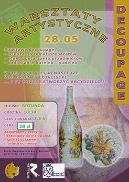 Organizator zapewnia przedmioty ( butelki i pudełka) do zdobienia oraz narzędzia.
