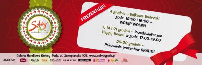 Z okazji tegorocznych mikołajków Galeria Handlowa Solvay Park zaprasza 4 grudnia wszystkich małych oraz większych amatorów teatru na Bajkowe Teatrzyki. Spektakle w specjalnie zaaranżowanej na tę okazję Sali odbędš się o godzinie 12:00 oraz 16:00. Wstęp wolny.