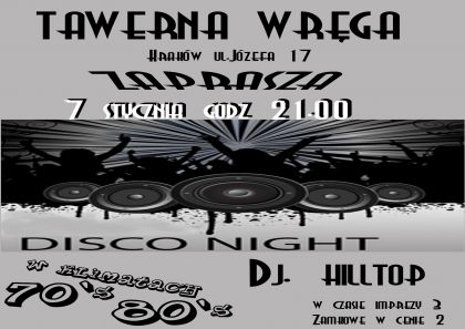 Zapraszamy w sobotni wieczr na doln sale gdzie Dj. Hilltop bdzie was raczy hitami z lat 70 i 80 a my promocjami na dobry browarek :)