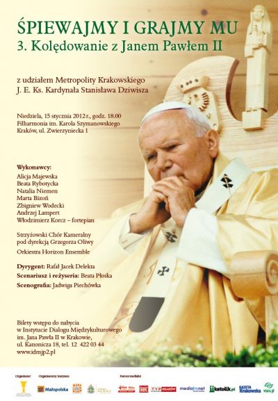 który odbędzie się w Filharmonii Krakowskiej 15 stycznia 2012 r. o godzinie 18. Koncert uwietni swojš obecnociš ks. kard. Stanisław Dziwisz. Kolędy i pastorałki zapiewajš: Alicja Majewska przy akompaniamencie Włodzimierza Korcza na fortepianie, Beata Rybotycka, Zbigniew Wodecki, Andrzej Lampert, Natalia Niemen, Marta Bizoń. Artystom towarzyszyć będš Strzyżowski Chór Kameralny pod dyrekcjš Grzegorza Oliwy i orkiestra Horizon Ensemble pod batutš Rafała Jacka Delekty.